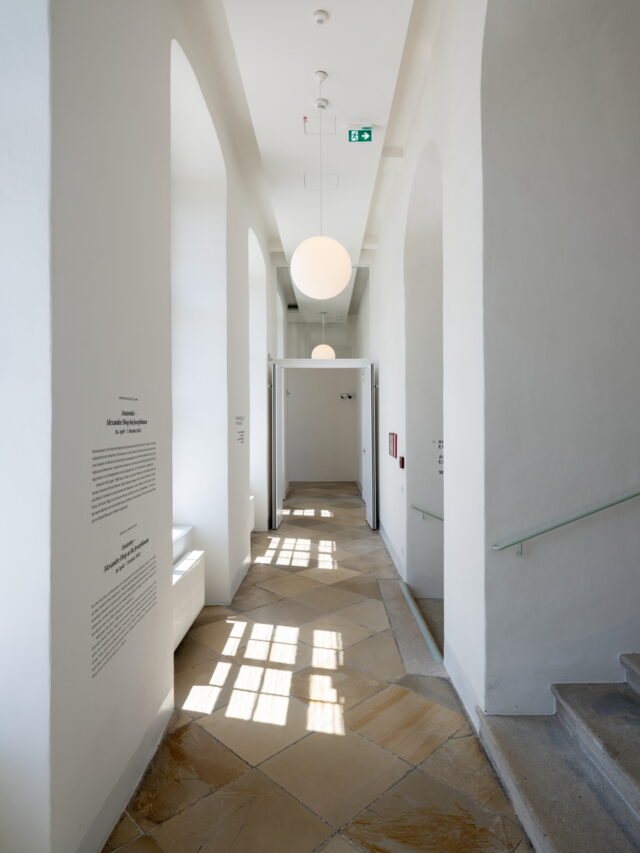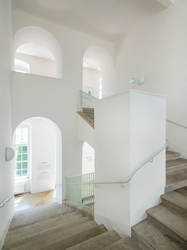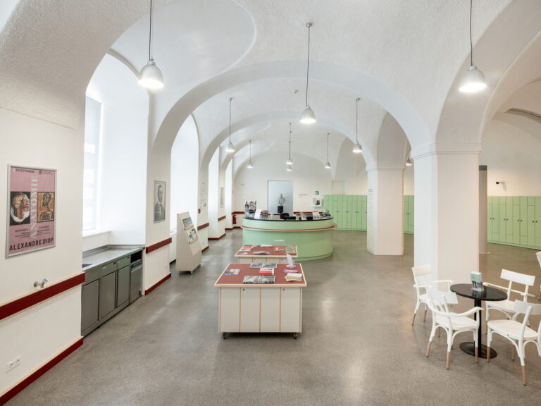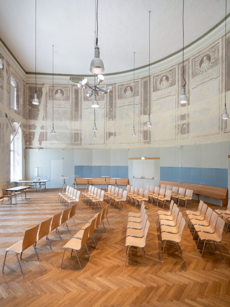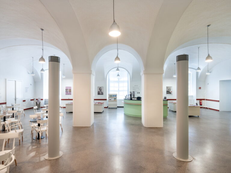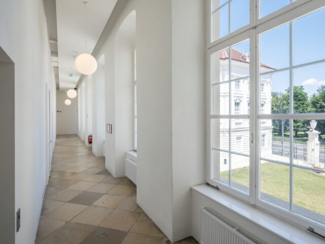 Der zentrale Haupteingang wurde aktiviert, damit wurde auch das zentrale Stiegenhaus wieder erlebbar gemacht. Man gelangt zuerst in den Van Swieten Saal, der von seinen Einbauten befreit, das zentrale Entree für den Ausstellungsbereich wird und alle dafür üblichen Funktionen aufnimmt. Der Ausstellungsrundgang führt durch das Erdgeschoß über die südliche Treppe ins Obergeschoß, das zur Gänze für Ausstellungsräumlichkeiten und die Bibliothek reserviert ist. An den Stiegenhäusern wurden die dienenden Funktionen leicht erreichbar angeordnet. Im Zentrum des Hauses trifft man auf den großen Hörsaal. Dieser wurde, einschließlich der eingezogenen Geschoßdecke, von sämtlichen Einbauten befreit. Er bietet für die unterschiedlichsten Veranstaltungen die entscheidende repräsentative, öffentlich wirksame Raumressource.